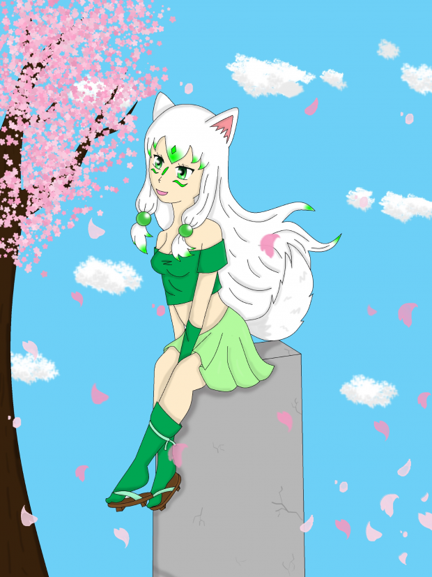 Nami is sitting on the pillar she was once frozen in time on! She used all her power protecting a village full of people she loved. But as always when evil is a foot she must awaken once again! I will be writing more of a back story for her soon.