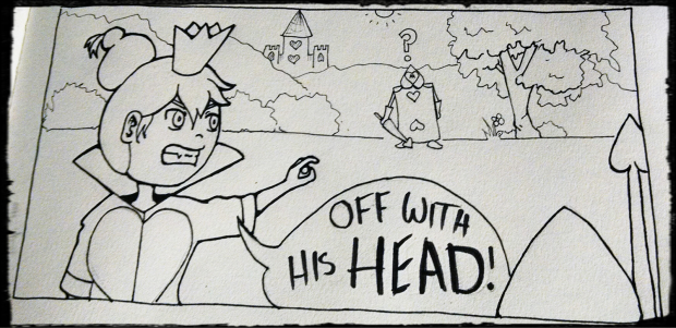 So this is the Queen of hearts saying her well known line. She isn't as fat in this as she was originally drawn. But I like it lol.