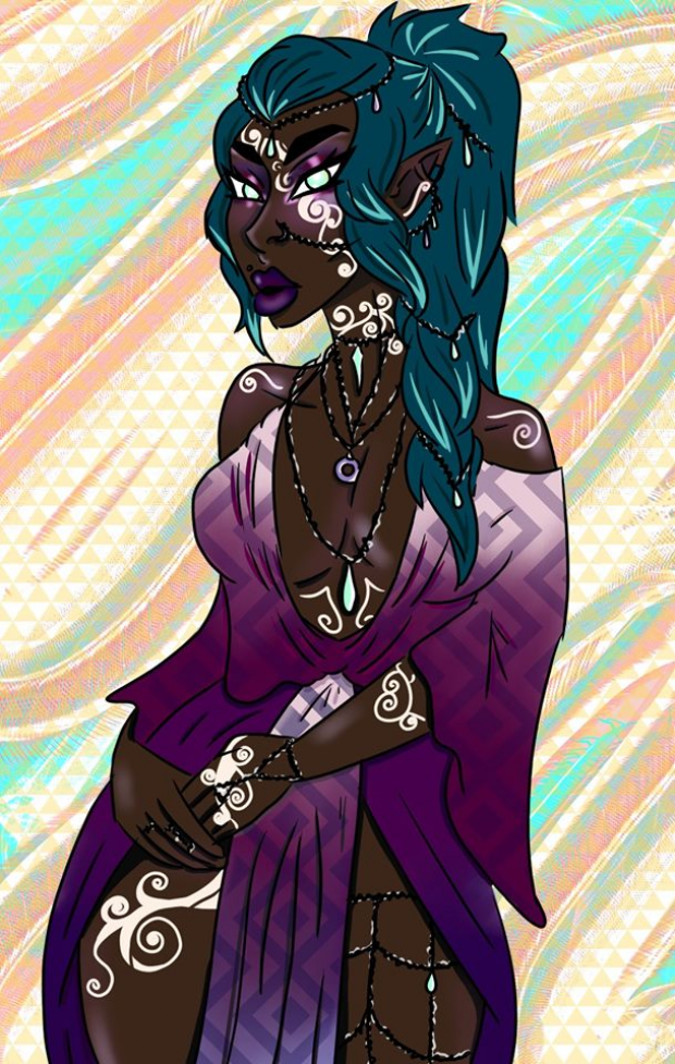 aaaand design #2 for the instagram oc design contest !! i wanted to come up with someone who had vitiligo, but ended up with these swirly markings instead. but, i think she's pretty. :3
