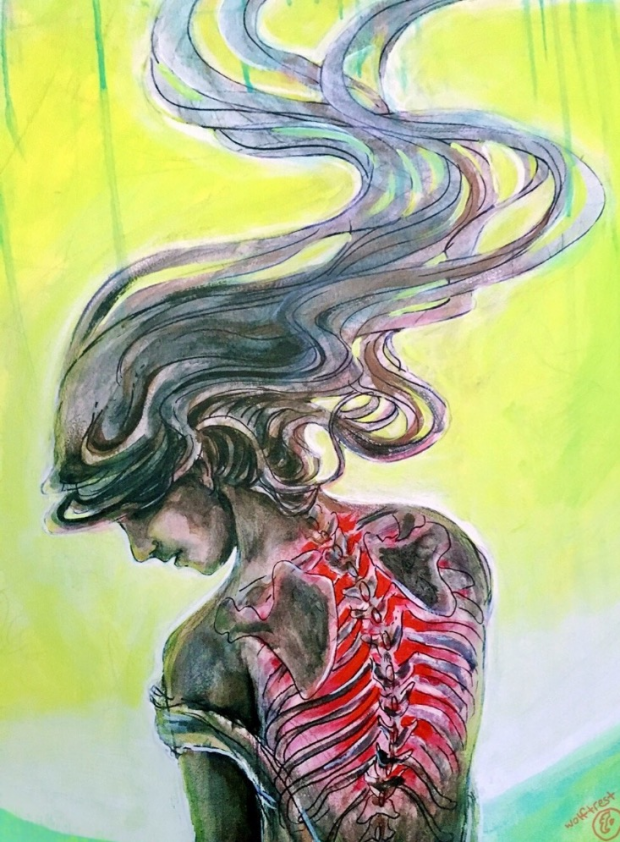 Closeup of painting of a character from my Wolftrest story I got to do live at DEEZOfest (a music festival) this year. It was so much fun with great energy! I hope I can do it again next year!