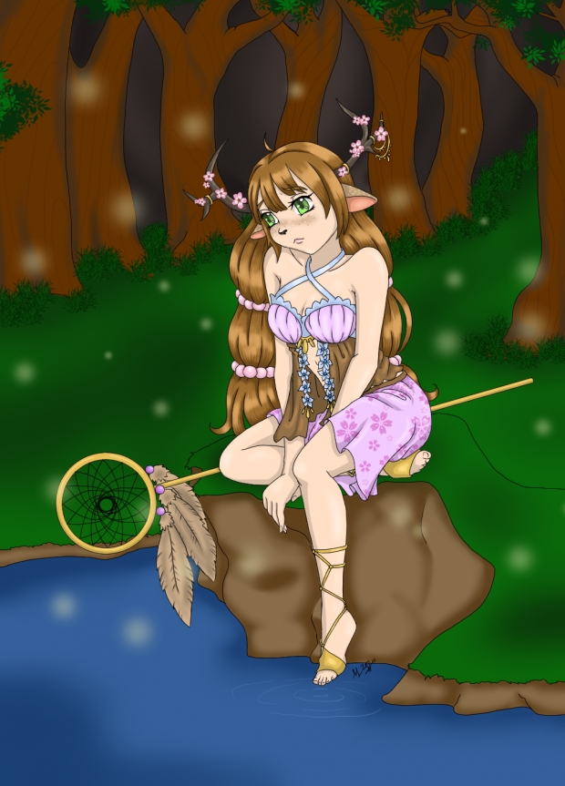 This is my version of my friend Moonfini's character Gwynith (I decided to give Nami a break). I wanted to show her shy, but lonely side as she sits quietly by a pool in the forest.