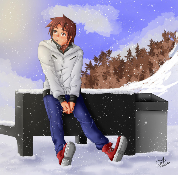 This week we have Rick waiting at the bus stop on a cold day. Didn't like how soft the snow turned out in my last drawing, so I found a sharper brush and I like how it turned out! Had a weird sunny but snowy morning today so I painted the same background lol