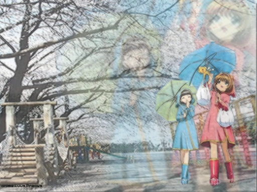 i had a wallpaper with sakura in the rain, and when i searched, there was also a picture of tomoyo in the rain! so here it is, took less than 30min, enjoy and comment ^__^