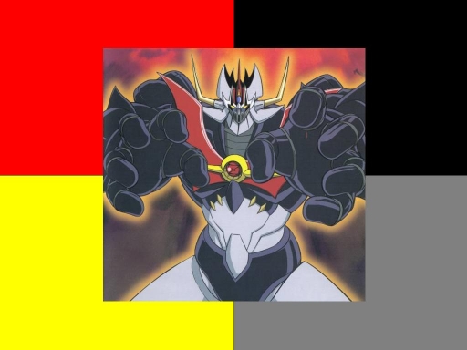 From the "Mazinger" OVA miniseries, "Mazinkaiser", which (in my opinion) is one of the best mecha anime released in the 2000s so far. In making this wallpaper in paint program, I used the line tool to make a cross that would separate the background in 4 areas. Then I used the fill-with-color tool to color the background, using the colors of mazinkaiser's armor parts (black, red, yellow, grey). Last step, I cropped out part of an animescan I found at animepaper and I placed at the center o the wallpaper. Any fan of "Mazinger" (and by extension, the mecha anime/manga multiseries of the legendary anime/manga author Go Nagai, who's still in the business today) will sure want to download this piece! Enjoy! LONG LIVE MAZINGER!