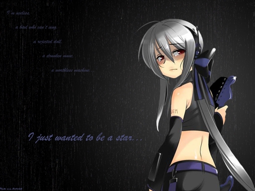 The melancholy Haku Yowane, representative of all those who can't make Miku sing realistically. She tries so hard but can never sing quite right.