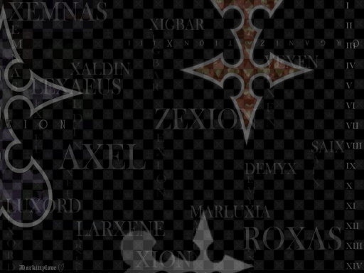 - axel, dark, demyx, i, ii, iii, iv, ix, kh, kingdom hearts, larxene, lexaeus, luxord, marluxia, names, nobodies, org, organization, roxas, saix, simple, v, vexen, vi, vii, x, xaldin, xemnes, xi, xigbar, xii, xiii, xion, xvi, zexion