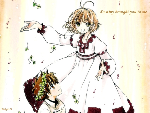 A cute wallpaper of Sakura and Syaoran as children. Words "Destiny brought you to me" are lyrics from Christina Aguilera's song "We're A Miracle." Enjoy ![]()