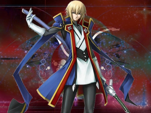 - abstract, blazblue, calamity trigger, jin, kisaragi, rival