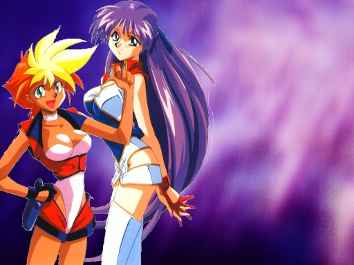 Another wallpaper of Dirty Pair Flash's Kei and Yuri. The two can't seem to get along in the beginning, but their relationship as partners gets better as the series goes along.