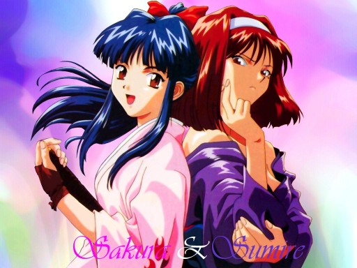My first Sakura Wars wallpaper of two of the Teito Hanagumi's stars, Sakura Shinguji and Sumire Kanzaki. Both have played the leads in many of Teito's theatre productions in the theatre company they perform in.