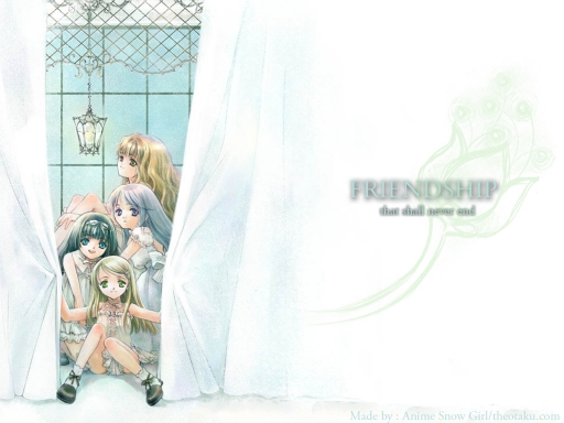 - all together as friends, dress, friends, friendship, ga graphic, happy, innocent, lantern, light, long hair, ribbon, smile