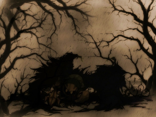 - dark, kirby, meta knight, rain, swamp, trees