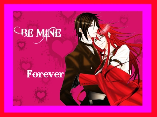 - be, black butler, challenge, forever, grell, hearts, kuroshitsuji, love, mine, red, sebastian, valentines