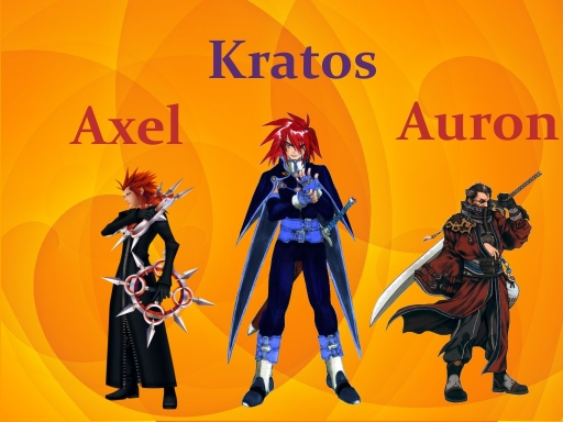 - Auron, Axel, FF X, Kingdom Hearts, Kratos, Symphonia
