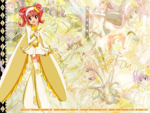 I'm sorry I haven't uploaded any wallpapers recently. I've been really busy with school and I'm trying to get the details of my life all straightened out. It is really hectic for me right now. I have a possible volunteer opportunity lined up and I hope it works out. But enough about that. I love Shugo Chara and I have read rumors on the internet that there might be a Shugo Chara 4th season. I hope they're true. Of course they could be just rumors but you never really know. I would love to find out what happens to the Guardians after elementary school. Middle school is a lot more awkward and challenging. I can see new enemies and a new plot unfolding. Maybe there could be a new evil corporation like Easter. There's just a lot of possibilities. My favorite transformation of Amu's is Amulet Dia. I wish she was in the anime more and she's just so pretty. I had to make a wallpaper of her. I really think there need to be more wallpapers of her because she's just so amazing. Amulet Dia is kind of an inspiration for me. The main reason is because that she inspires me to go after my dreams and to believe in that sparkle in your heart.