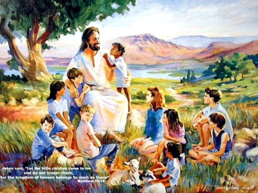 This is by far one of my favorite bible quotes because I can just picture Jesus and the children. I think of how happy and lucky they were to meet them and this picture is exactly how I picture it. Everyone smiling and laughing, makes me wish I was one of those lucky kids ^-^