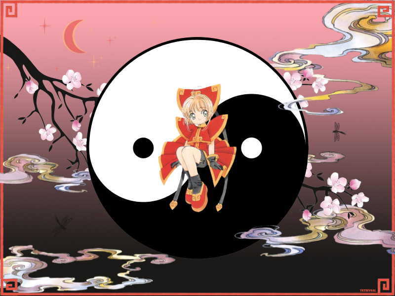 - , cherry blossom, chinese, sakura, sakura kinomoto, ying and yang