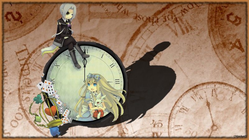 - alice liddell, cards, clocks, Looking Glass no Kuni no Alice, nightmare, rabbit