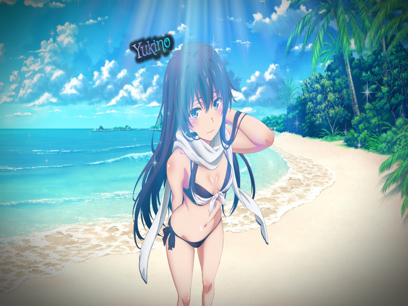 - Beach, Bikini, Black hair, Blue eyes, Dress, Green, Kawaii, Long hair, Love, Ocean, Sun, Water, Yahari ore, Yukino