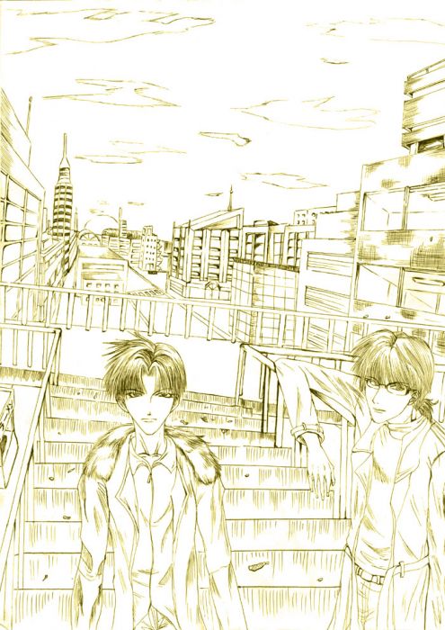 Wild Adapter fanart (lineart). I don't really want crtiques this time cos I know where I messed up esp since I didn't use a ruler *sheepish grin*. @_@ Tokito and Kubota love!