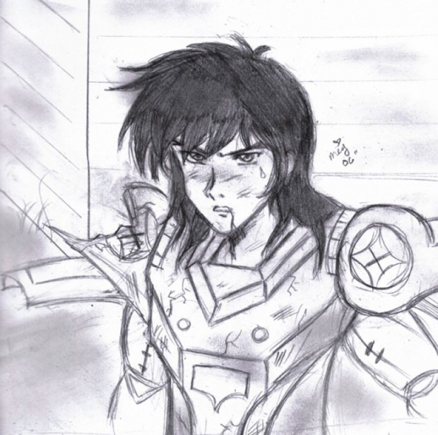 Oh the nostalgia. It's Ryo from Yoroiden Samurai Troopers, better known as Ronin Warriors. After my find of one of their art books in a used book store, and a few DVD's, I wanted to draw him, since he's my favorite character. So here is a sketch. This one took two hours! Lol I know it's smuged. I did it on purpose to give the sketch more feeling. It was so damn hard to draw that armor so I know it's not accurate or proportioned right. I might fix it when I CG it. The idea of Ryo being injured came to mind while listening to The Swan Song by Within Tempation. Enjoy! ^_^
