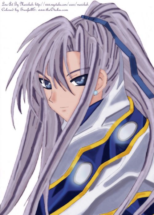 My next attempt at coloring using PhotoShop. This is Platina from the game Apocripha/0 It took forever since I kept redoing part of his tunic and hair. I�m still not completely happy with it but at the same time, if I waited until I was perfectly happy�It would never get posted. Anyway�the line art is by Mariskah http://www.myotaku.com/users/mariskah Though it�s not up at her site yet as she is doing her own version of it with pencils and such. She was still kind enough to let me use the basic line art that she had scanned though. ^_^ I�ve never even played the game that this is from and seeing that the character Platina is pretty cute, one of these days I plan on playing it. It�s also posted at my Deviant Art account here: http://www.deviantart.com/deviation/46817799/ Colored in Adobe PhotoShop Elements 4.0 Platina © Apocripha / 0