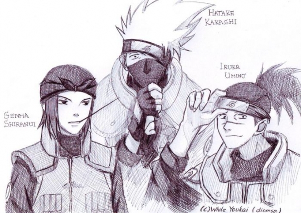 Yay! A sketch of three teachers! I love Kakashi, and somehow I found Genma quite attractive. He is just cute. ^_^ And Iruka-sensei is... Is cool too. ^_^ Hope you like the picture. Please, vote and comment. Thanx!