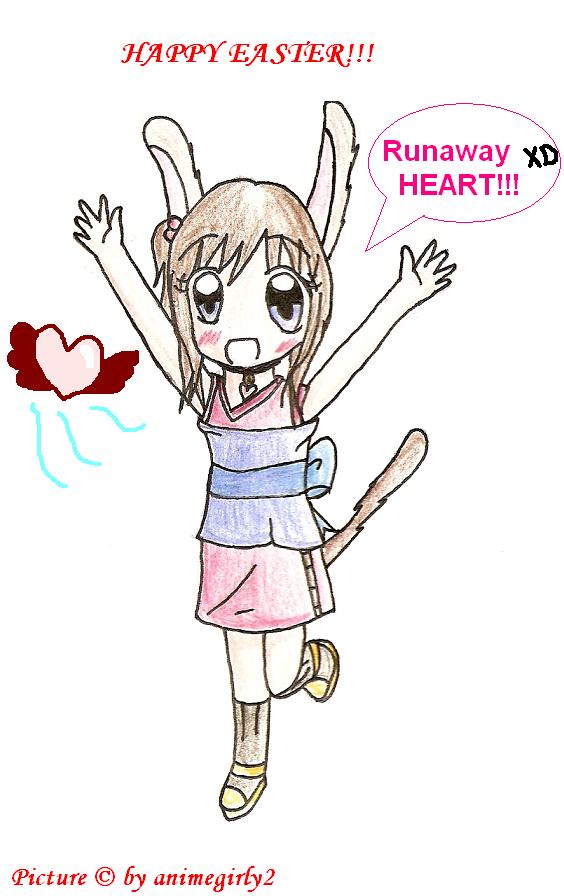 I was thinking of what I should draw for Easter while I was reading animegal84119's fanfiction. Then I looked at Kirari's discription (based on me... ^^'') and I thought, "Ooh!!! Bunny ears!" Then, I drew Kirari here. And the runaway heart thing was just random... ^^'' Hope you likey!