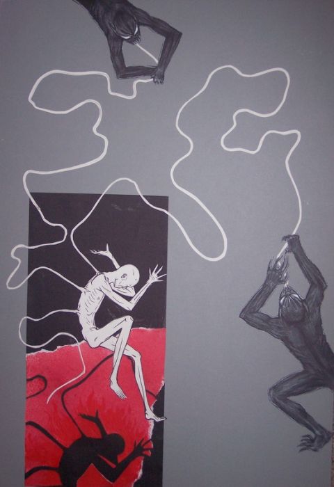 by the end of junior year, i was exhausted and drained. it seemed school, parents, expectations,and even friends and my (now ex)boyfriend sucked all the life out of me, i felt empty and worn out. so this was how i portrayed it. for others, it's different interpretations, about insecurities or disorders or problems that seem to take everything out of a person. so interpret it as you will.