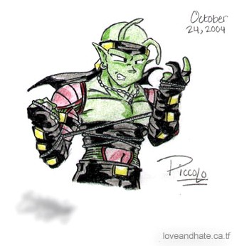 Ahahaha, My favourite character a little tied up. My attempt to make him hot. I know I failed but gotta love leather on a Namek. Ahaha. Pencil, coloured in with pencil crayons.