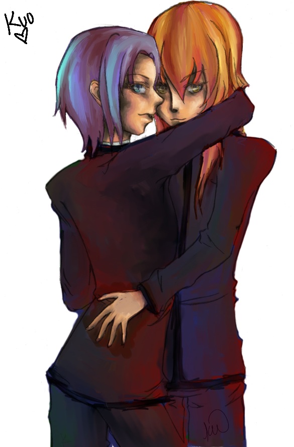 A scrap doodle with some crazy looking paint on it of Yuujirou and Tooru from Princess Princess =)