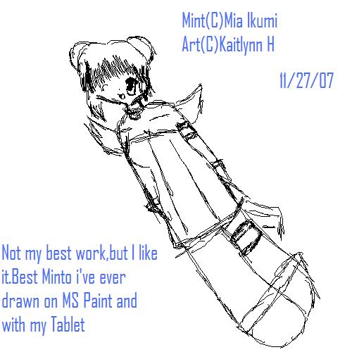 I hate and love this drawing -_- I see all the mistakes in this drawing The body is to huge and the head is to small the eyebrows are missing a little Theres more I bet I got her outfit wrong Sorry that I didn't color it Taking requests and art trades Minto(C)Mia Ikumi Art(C)Kaitlynn Tokyo Mew Mew(C)Mia Ikumi