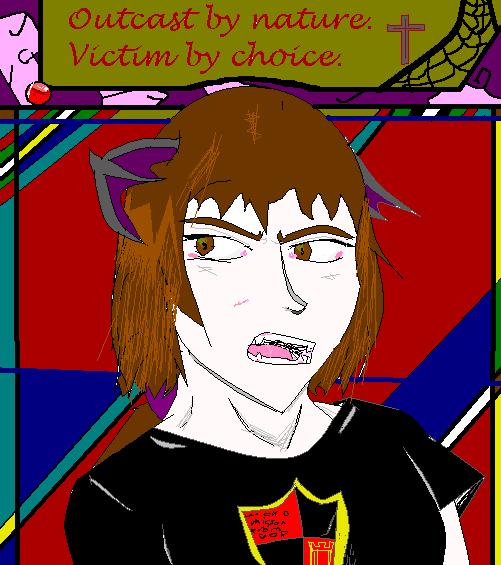I felt like doing something dark for once. Came out pretty cool! This is the biggest thing I've done on MS Paint, about 2 hours I think...This is a self-insert of myself. I may do my friends later. Right now my expression seems to be doubt, anger, and insulted. I don't like to be referred to as a "monster". Everyone has their split sides. Mine just runs deeper.