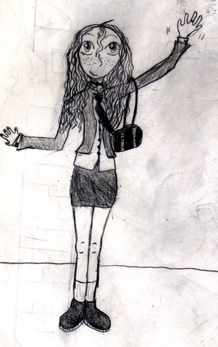 Another random picture of Isabelle. I think I did a pretty good job on the hands in particular...when you consider that I'm bad at drawing hands. I think the purse she's carrying is heavily demented, though. But do you like it, people? It's kind of old...