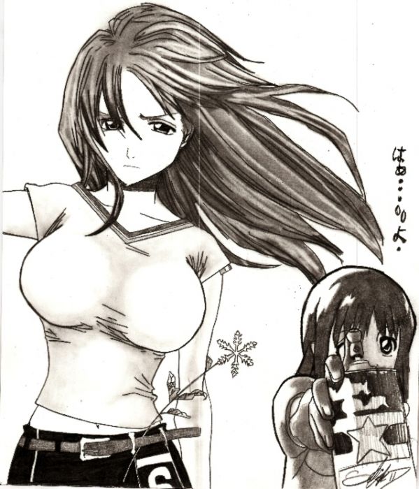 Saw this picture and decided to draw it. I've added some shading around the character, made the hair diffrent and added a little orihime there. I like her pose, so I hope that made the picture a little cooler XD Thanks for viewing, and whoa this section is growing by the hour. Once again thanks.