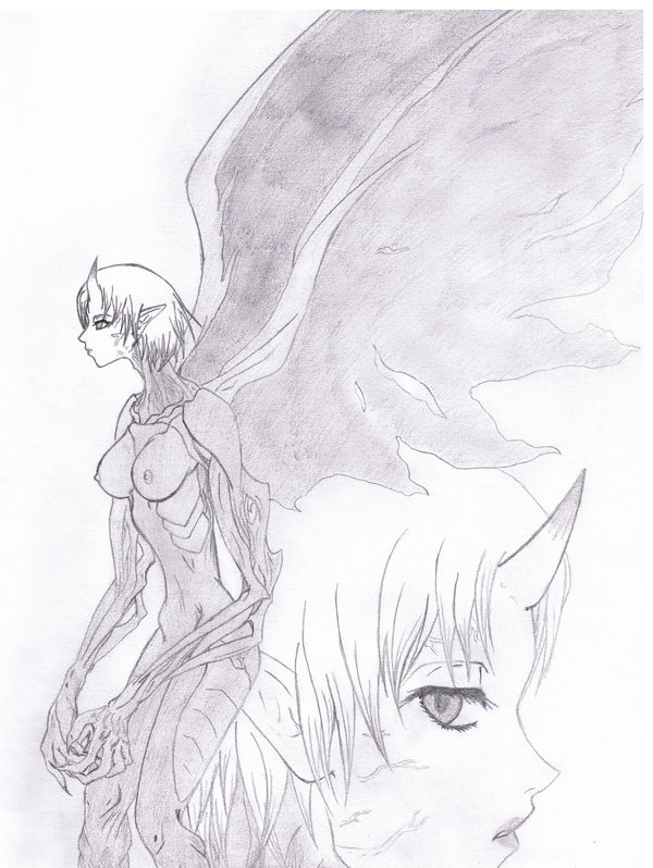 This was one of those drawings I had on my massive list of drawings to do... I wanted to do it really badly at one time, but I lost my motivation when I was drawing it today and it looks like crud now. Well, it's a picture of Priscilla from Claymore except I changed it a bit to make it more simple (since I didn't want to spend much time on it) and a little prettier (because most of Claymore's artwork sucks). Sorry for wasting your time. XD