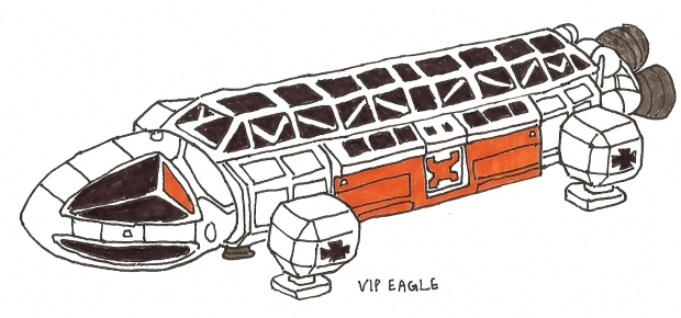 The VIP Eagle from the 1970s British Sci-Fi Classic T.V. series "Space: 1999". This type of Eagle Transporter (or simply "Eagle") is only seen in the show's first episode, "Breakaway".