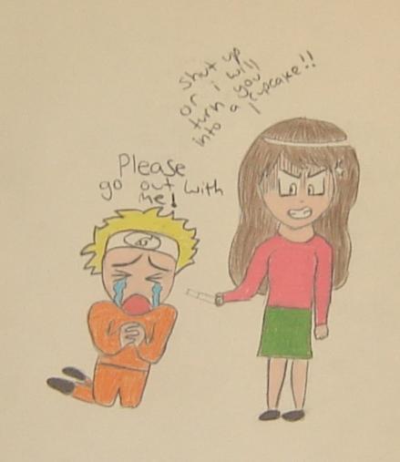if you cant read what it sais cuz of quality it sais: naruto:PLEASE GO OU WITH ME! hermione:shut up or i will turn you into a cupcake!wish me luck