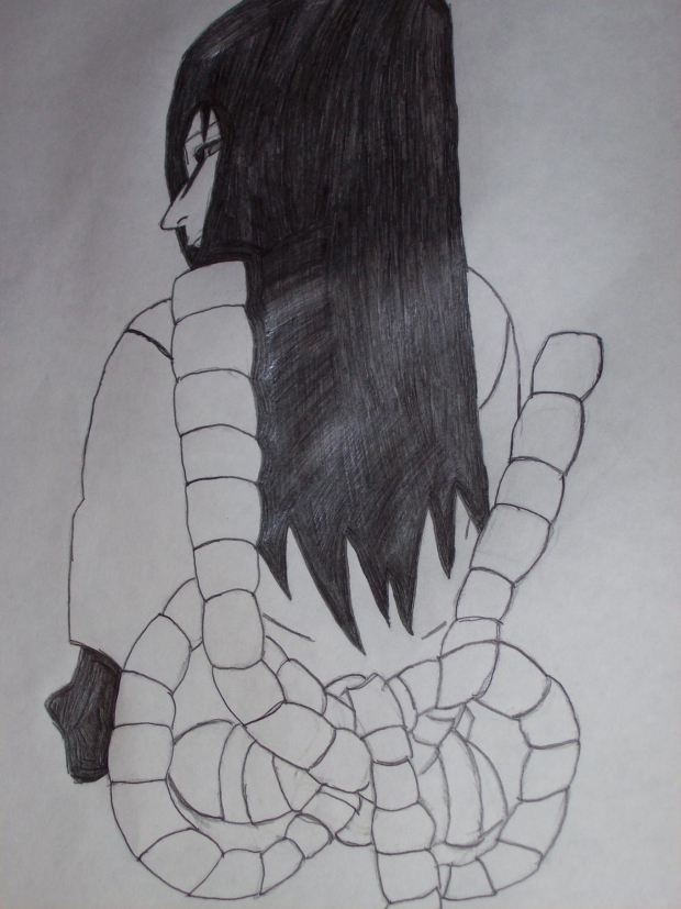 well here's my newest drawing and it became my fave early on but anywayz it's my 14th drawing and it's of Orochimaru in Naruto Shippuden my very first attempt at drawing Orochimaru so i hope i did good on him even though most of his face is hidden and he's turned backwards but all in all i think i did fairly well on him ^_^ comments appreciated flames not and enjoy the drawing of Orochimaru ^_^