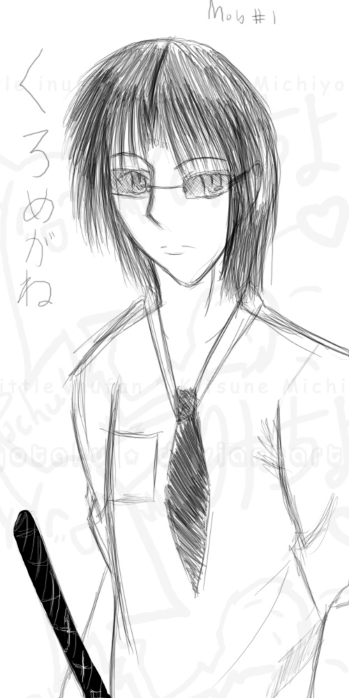 Hahaha, here's the "mob" picture of Pakkuro 83 He's very friendly and sweet, however very mysterious and if you mess with him or one of his friends, he will get you. He said he liked a certain type of sword so I made that his weapon =D lol ~ In his other pictures, I did not put his sunglasses on him so in this one he did since he reminded me =D I think he looks cool like that x'D his nickname (Kuromegane) also means Sunglasses =P He seriously wanted me to post up these pictures so all the credit of spamming people's submission boxes =D goes to him xDDDD