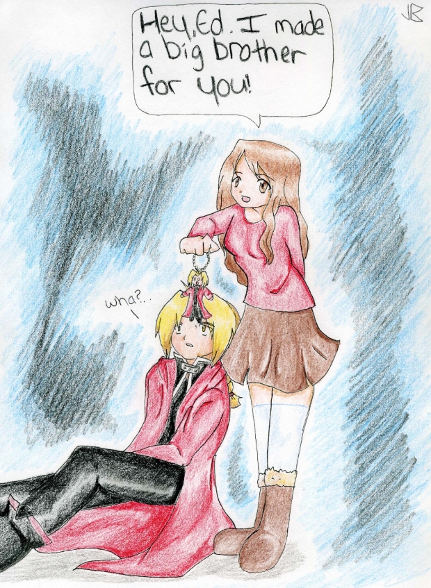 - anime, art, art trade, ed, edward, elric, fma, fullmetal alchemist, herself, mewchero, small, tease