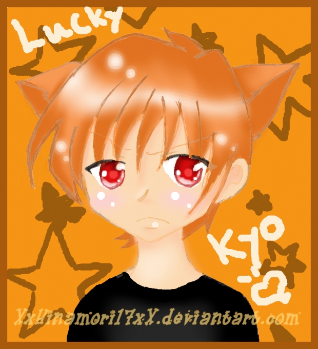 Lucky Kyo for Irish day of which I COULD CARE LESS. So in my non caring, I made a Kyo drawing. Why? HE'S ORANGE!!!!! And That is the opposite of...green. So you can take your drunken holiday and have fun with Lucky Kyo. The only REAL way to celebrate your holiday. iF SOMEONE DARES TO PINCH ME I WILL NOT HESISTATE TO PUNCH THIER LIGHTS OUT. Have fun!!
