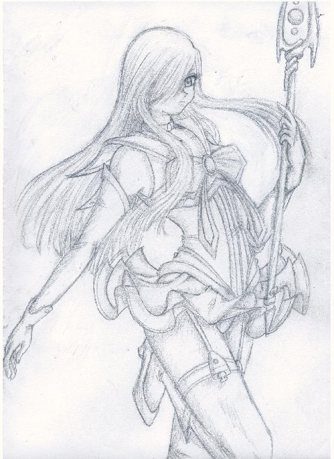 This was sort of requested (actually, I just told him I'd do it for him) by sasuke uchia. It's Tear Grants from Tales of the Abyss. I've never watched or even heard of the anime, so This was done on mainly references. I don't think I like her right hand, I might fix it, but other than that I think it turned out alright! This is just a sketch, I'll have line art for it/ have it colored when I get some time.