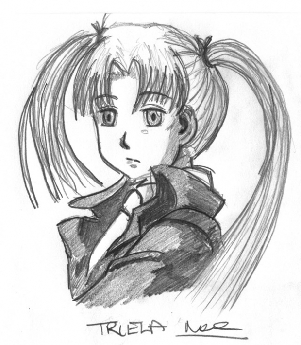 Heres an old fanart I produced. It's Triela from Gunslinger Girl, the first verion was rough and messy, the second version was me tidying the first version up. Awesome Anime, a must watch.