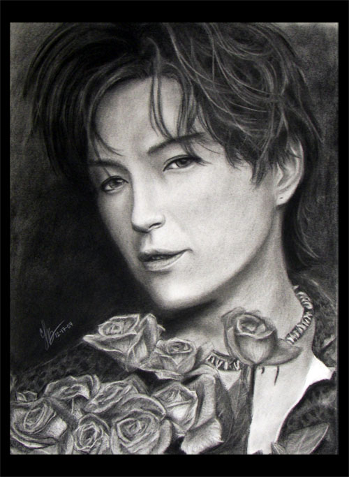 This was my first charcoal portrait and of course I had to do Gackt. XD I think I spent about 25 hours on this and my teacher gave me a B+. ^^ I was happy. He was a tough guy to please. lol
