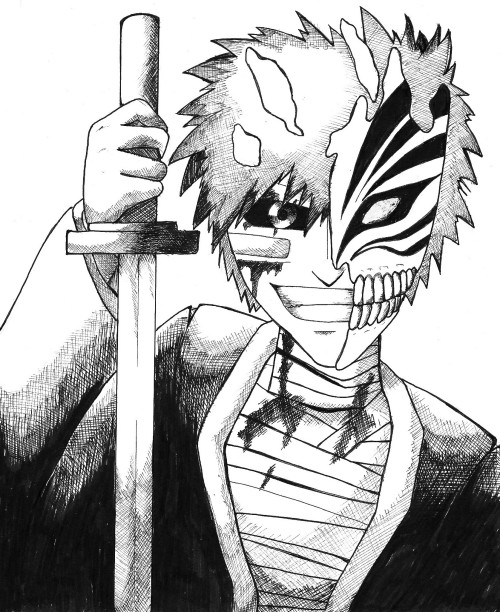 This is actually a tatoo design one of my mom's friends that I'm getting paid to draw. ^^ He wanted some Bleach picutres so I've got one finished. I'm pondering on what I should do next. >.