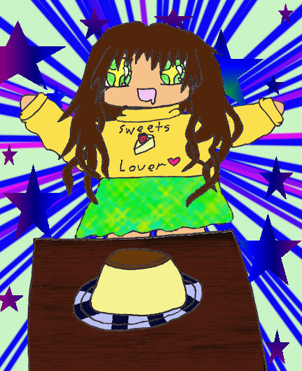 - anime, challenge, chibi, contest, cute, drool, elf of light, flan, hair, long, lovablepanda, manga, skirt, sweater, sweets