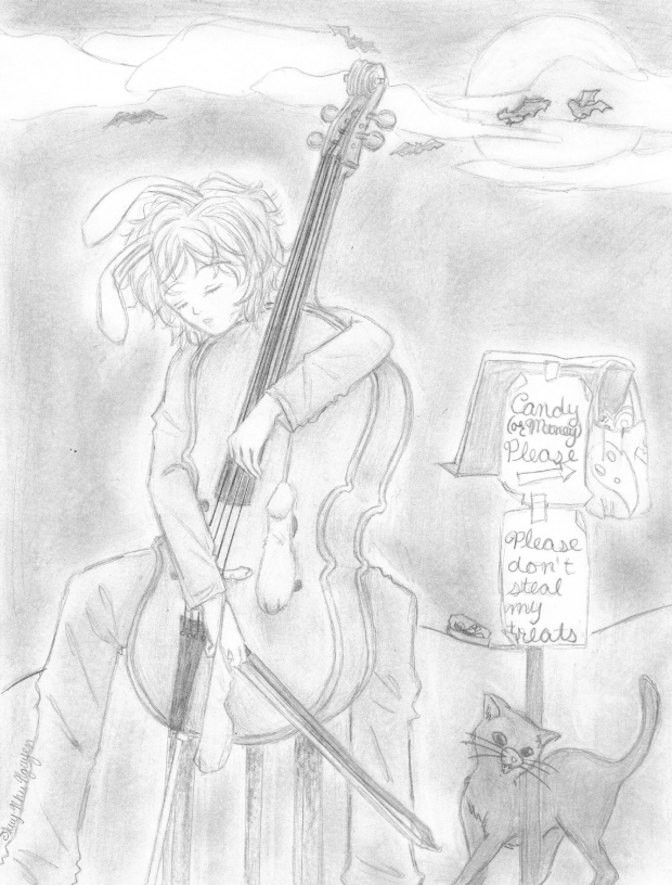 - bunny, cello, costume, halloween, keiichi, la corda d'oro, music