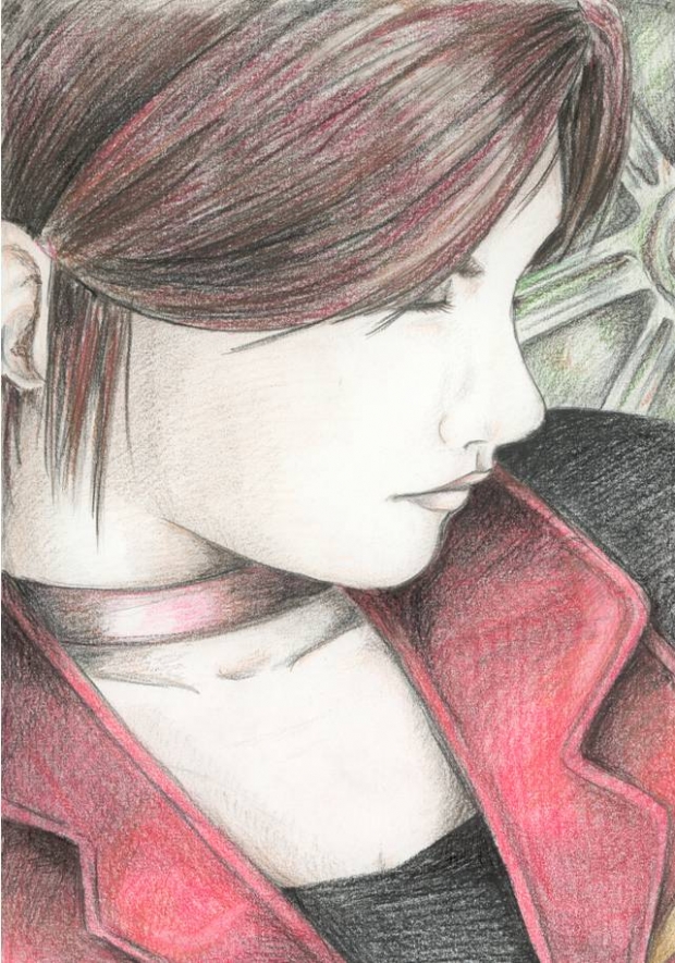 Yup, one of the many heroines of the Resident Evil series. I know it's not exactly the best picture but it started out as a doodle, then I got carried away with crayons . . . I just like it, that's why I've put it up.