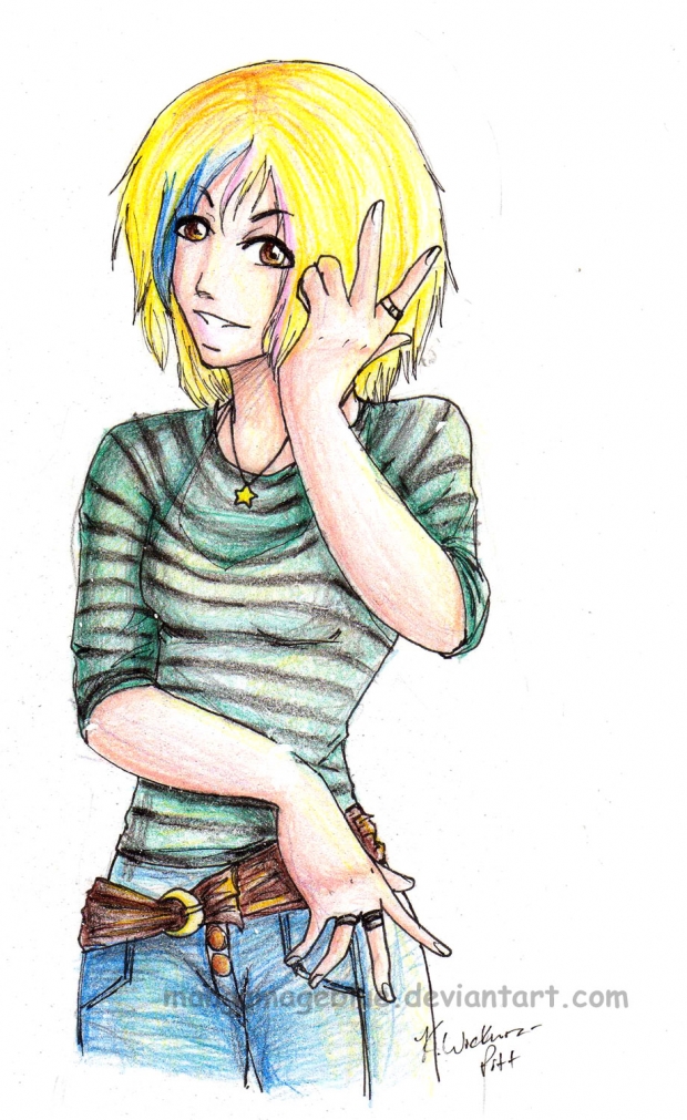 My oc Karen; found this sketch lying around when I was cleaning up my work area and decided to ink and color it traditionally while Wyatt had the computer. It's not much, but it's something :D lol